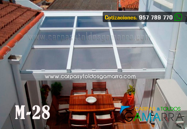 Para coberturas mas livianas como lavanderías, patios, cocheras, se pueden realizar en estructuras de aluminio con presupuestos aceptables y económicos.
